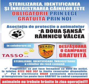 👉 Transportul și îngrijirea câinelui, înainte și după sterilizare, revin în sarcina proprietarului.