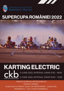 O nouă ediţie a SuperCupei României la Karting electric va avea loc în weekendul 4 – 5 iunie 2022, în centrul municipiului Râmnicu Vâlcea.