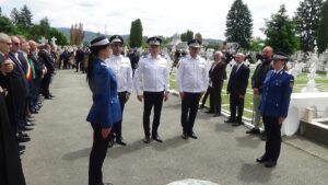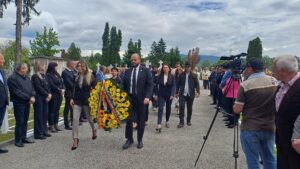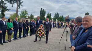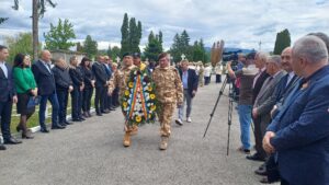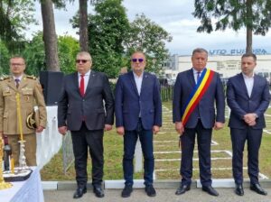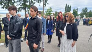 Manifestarea a continuat cu ceremonia depunerii de coroane și jerbe de flori la Monumentul Eroilor din Cimitirul Cetățuia.