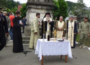 Ceremonia a debutat cu o slujbă în memoria eroilor care au pierit pe câmpurile de luptă pentru apărarea patriei noastre.