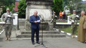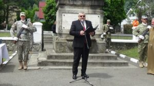 Instituția Prefectului – Județul Vâlcea a organizat astăzi, 29 Mai 2025, cu sprijinul Garnizoanei Râmnicu Vâlcea o ceremonie militară-religioasă dedicată Zilei Eroilor. La evenimentul desfășurat în Municipiul Râmnicu Vâlcea, la Monumentul Eroilor din Cimitirul Cetățuia au participat: prefectul județului Vâlcea – domnul Mihai Oprea, Înaltpreasfințitul Varsanufie – Arhiepiscopul Râmnicului, administratorul județului Vâlcea domnul Adrian Mihăilă, primarul Municipiului Râmnicu Vâlcea – domnul Mircia Gutău, doamna viceprimar Carmen Preda, președintele filialei “Matei Basarab” Vâlcea a Asociației Naționale Cultul Eroilor “Regina Maria”, domnul Eugen Petrescu, comandantul Garnizoanei Vâlcea – domnul Lt. Col. Dănuț Adrian Șerban, vâlceni, parlamentari, precum și reprezentanți ai instituțiilor deconcentrate din județ.