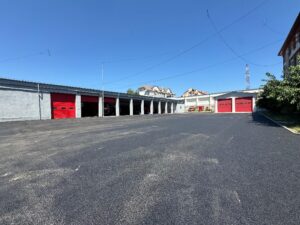 Proiectul a presupus reabilitarea curții interioare, prin amenajarea bordurilor și turnarea unui strat de asfalt special, cu fibre polimerice, care să reziste traficului intens al autospecialelor de intervenție.