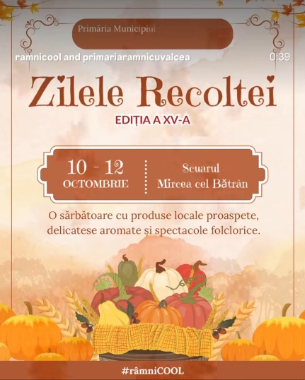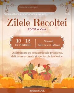 Ajuns deja la cea de-a cincisprezecea ediție, evenimentul „Zilele Recoltei” invită râmnicenii în week-end-ul următor să se bucure de roadele toamnei, de aromele fructelor și legumelor proaspăt culese, de nostalgie murăturilor și dulcețurilor populare făcute după sau pete populare de talent. Între 10 și 12 octombrie, în Scuarul Mircea cel Bătrân