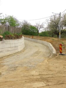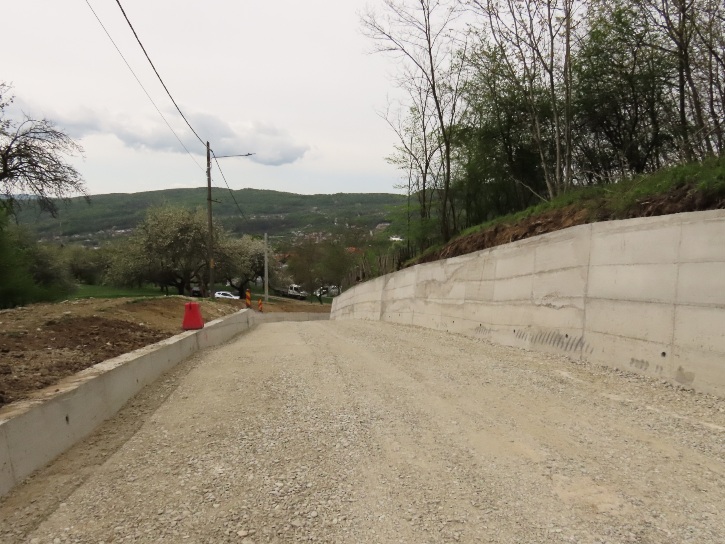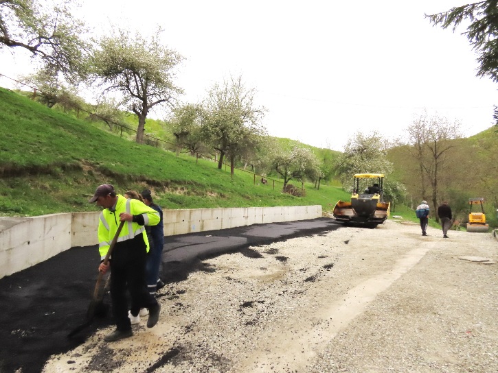 unde astăzi, după finalizarea etapei de pregătiri, a început asfaltarea unei porțiuni de aproximativ 300 m dinspre capătul de la Biserica Aranghel în jos (inclusiv amenajarea unei parcări, foarte necesare, în fața lăcașului de cult), după ce, recent, tot aici au fost amenajate ziduri de sprijin pe ambele laturi ale străzii.