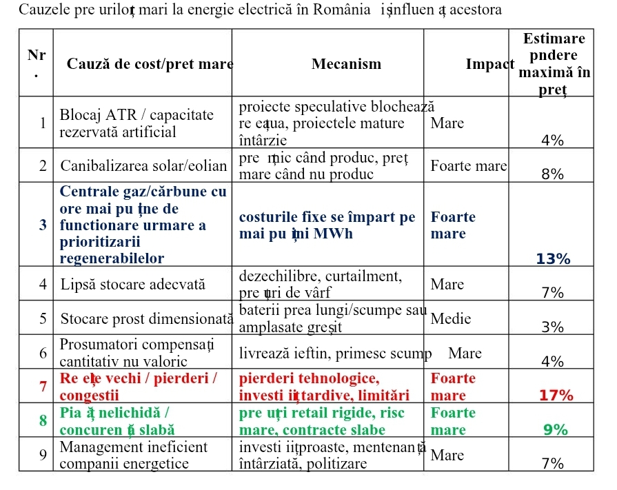 Un sector energetic prost condus nu poate livra energie ieftină, indiferent câte panouri solare instalează. În energie, managementul prost nu se vede imediat ca într-un magazin care dă faliment. Se vede peste 5–10 ani, sub formă de tarife mai mari, avarii, congestii, capacitate indisponibilă și investiții refăcute și necesită alși 5 – 10 ani pentru a reduce influența în prețuri mari.