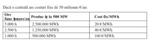 Formula este: cost/MWh = cost variabil + cost fix anual / MWh produși anual